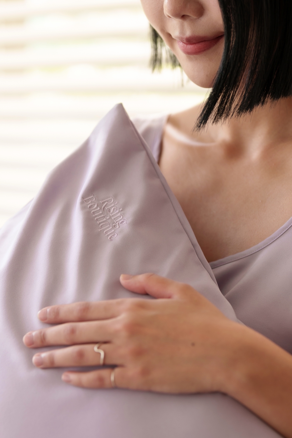 啞光設計柔滑刺繡枕頭套一對-薰衣草紫