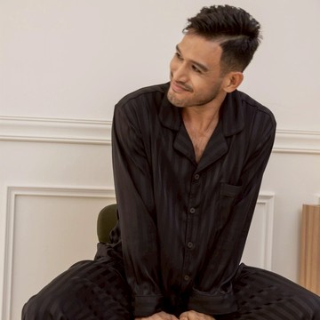 Rising Boutique 經典條紋冰絲緞面長袖套裝 - XL