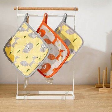 北歐質感家居Riches Base 狐狸童話印花隔熱墊4入組 4款任選 - 小(15cm)-黃底灰狐狸