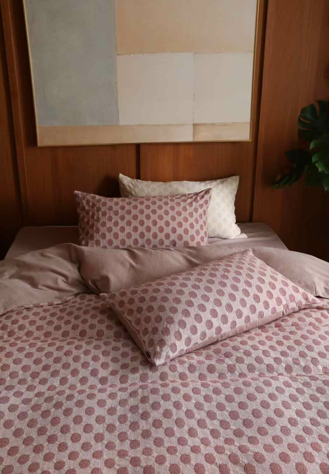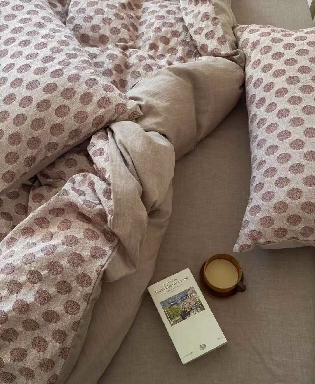 【ROZZ原棉波點系列】米白-色織雙層紗四件組 - 雙人加大