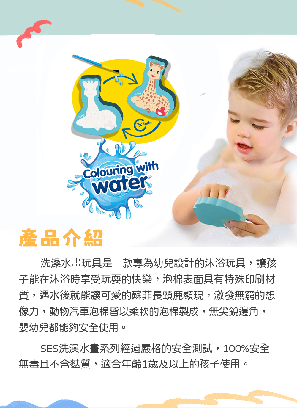 荷蘭SES 長頸鹿蘇菲洗澡水畫玩具-14499