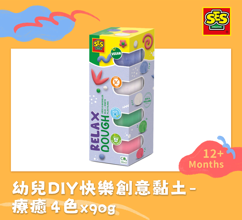 荷蘭SES 幼兒DIY快樂創意黏土-療癒4色x90gr-00514