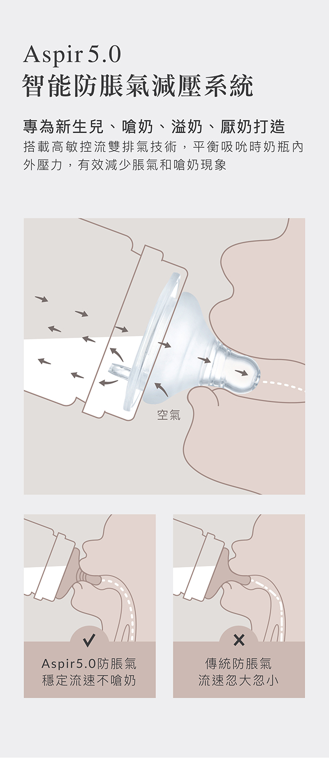 防脹氣奶嘴:矽膠(-40℃~ 150℃)