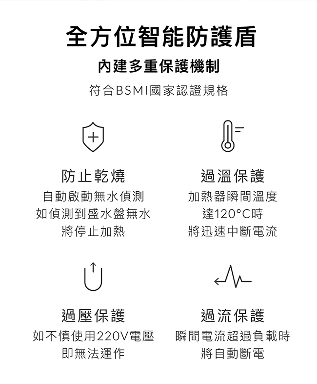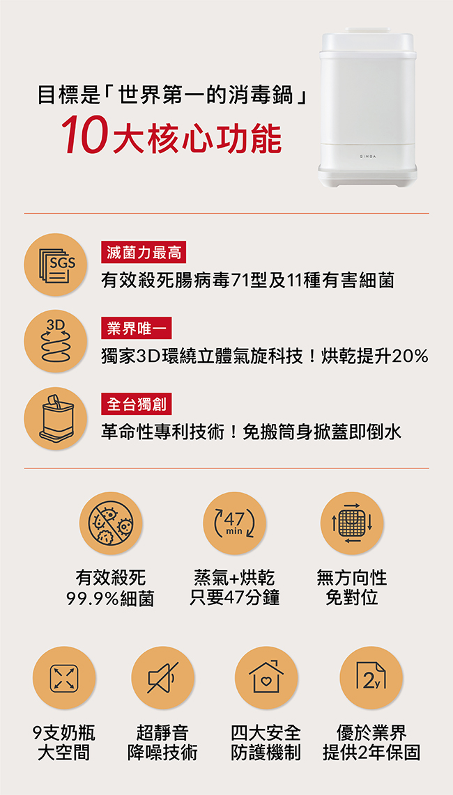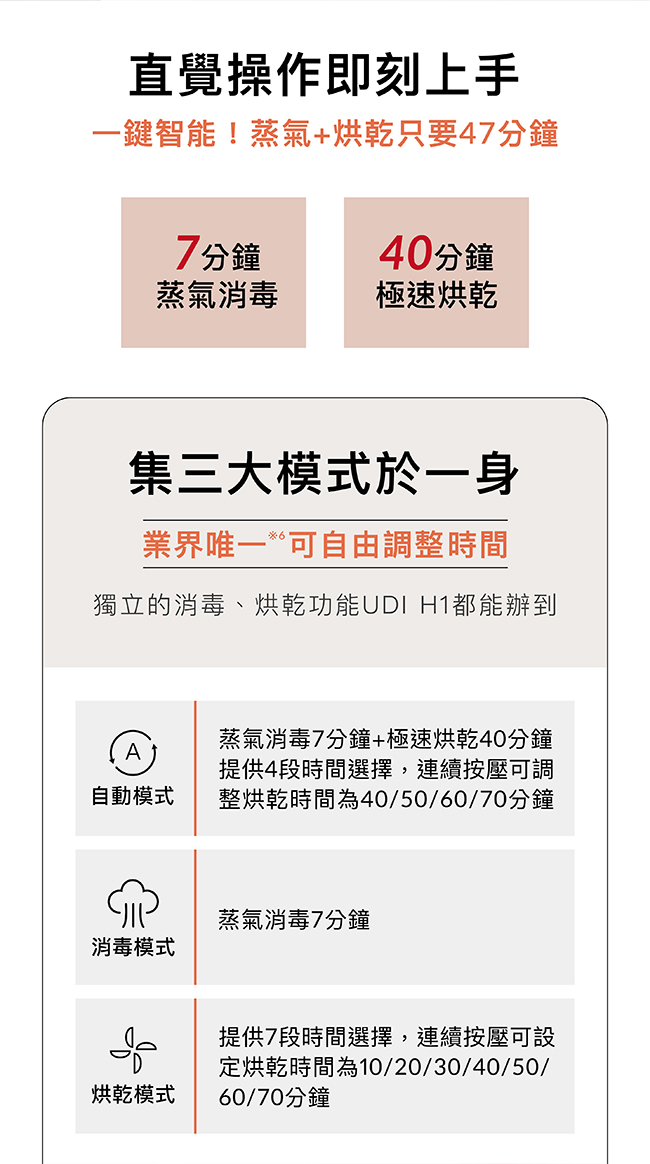 •本產品僅供消毒、烘乾之用途,為確保衛生安全,請勿蒸煮食物、美容敷臉等。