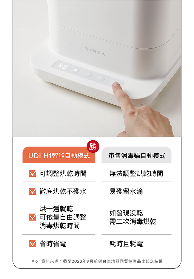 Simba小獅王辛巴 UDI H1智能高效蒸氣烘乾消毒鍋 - 杏茶