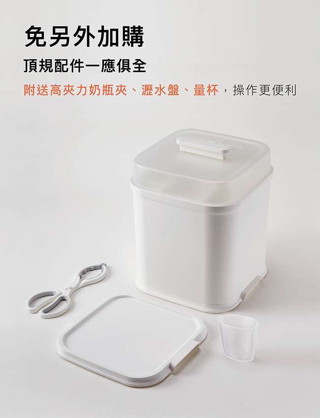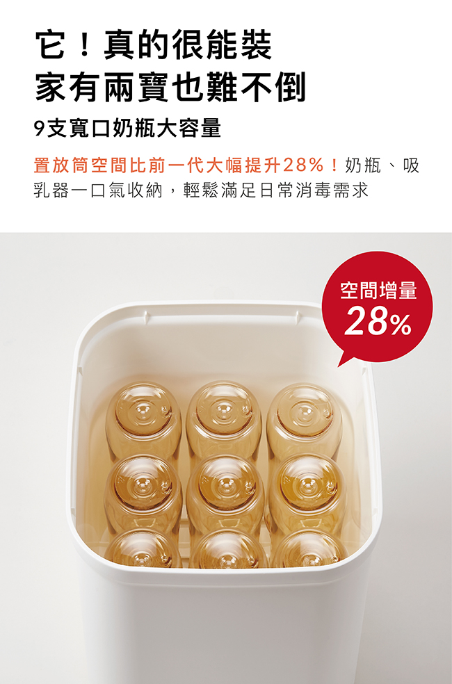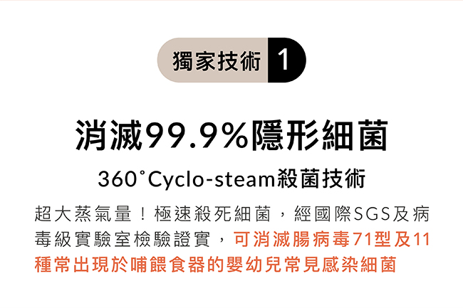 •本產品僅可使用水進行蒸氣消毒,請勿倒入如酒精、精油等任何易燃物質,以免發生危險。