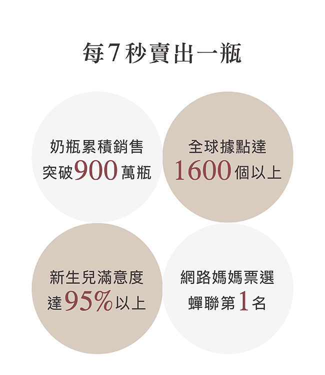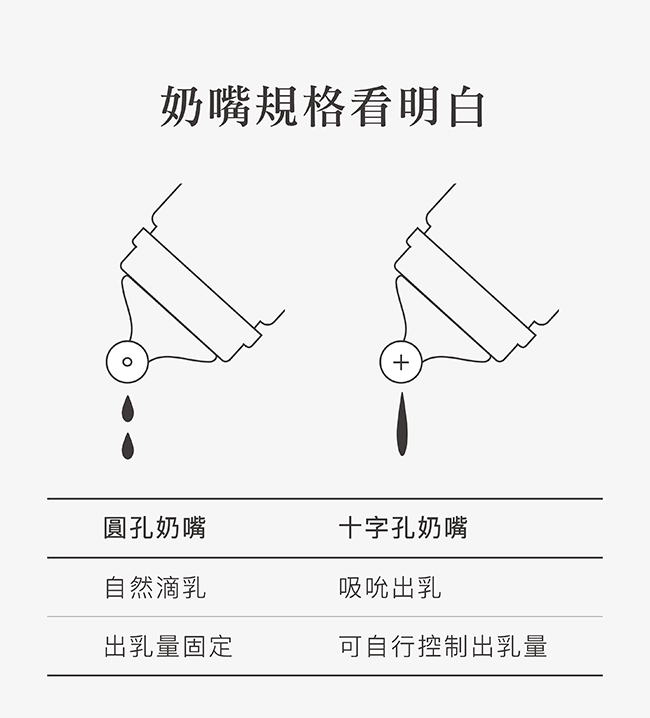 5.支援新生兒成長階段,容量、奶嘴尺寸、儲乳配件齊全。