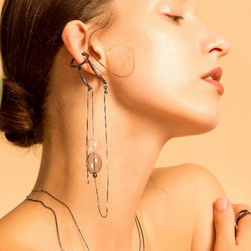 DATE. 18/08/21. Bubble Nebula - Double Hoop Ear Cuff + Bubble Threader Earring (Black Gold Plated)