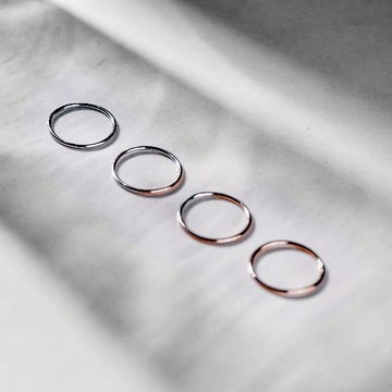 月圓圓缺系列 純銀雙色細戒-玫瑰金+白金色