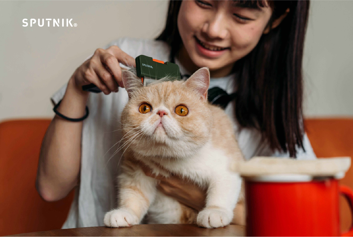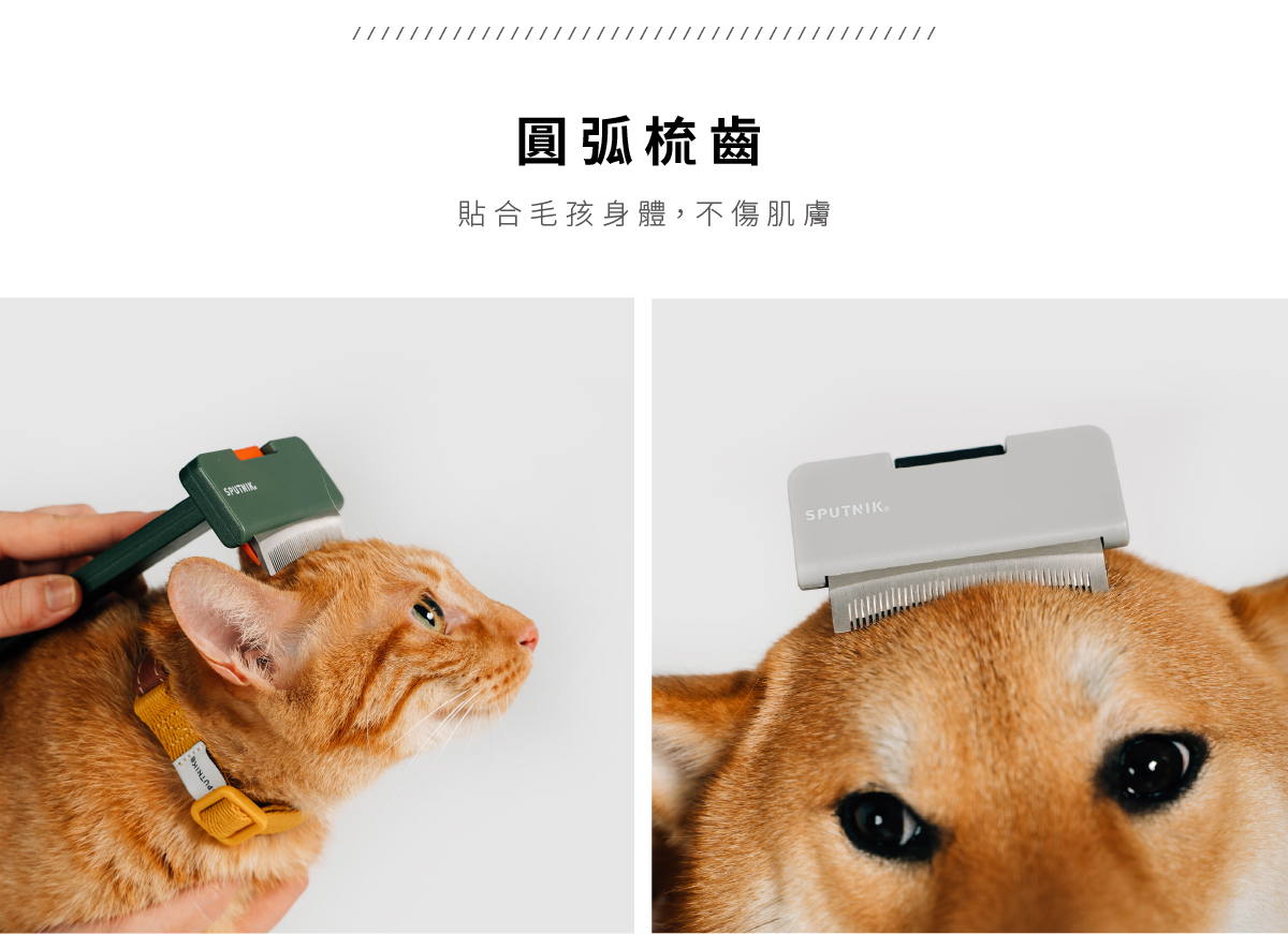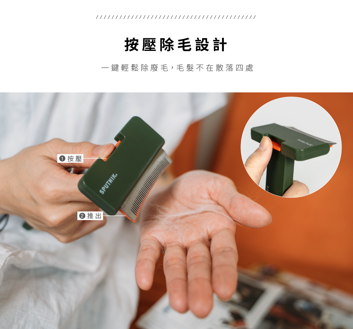SPUTNIK 寵物梳子 綠色 一鍵除毛 圓弧梳齒 寵物清潔護理 1支