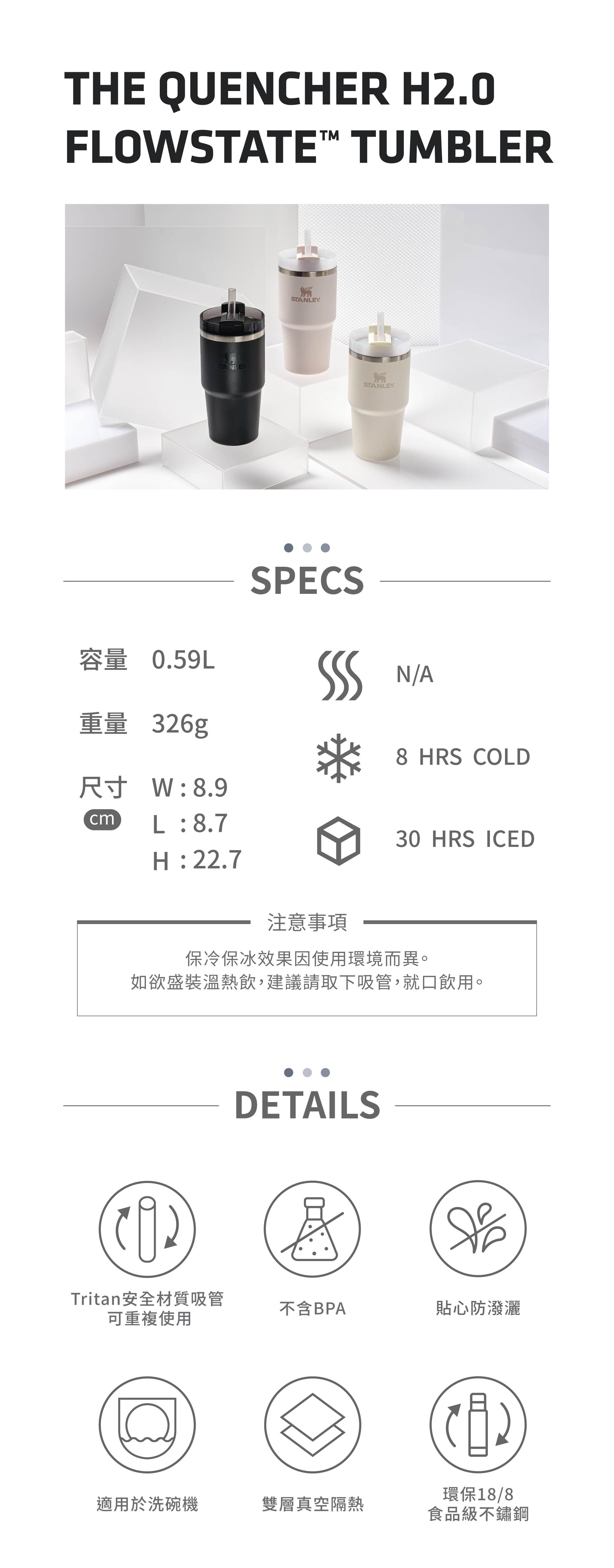 STANLEY 防漏吸管隨手杯 0.59L 山櫻粉