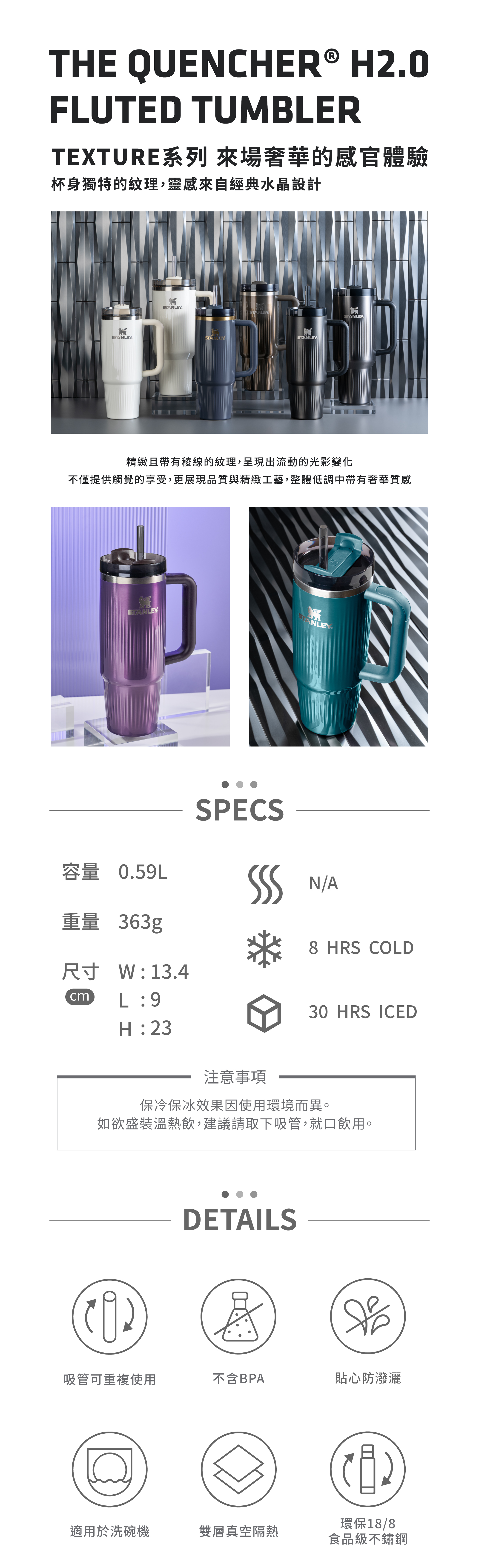 STANLEY TEXTURE系列 吸管隨手杯2.0 0.59L / 鉑金粉