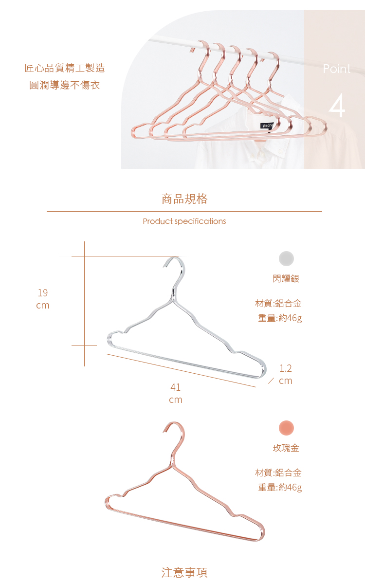 規格■材質:鋁合金■顏色:閃耀銀、玫瑰金■尺寸:約41x19cm■重量:約46g