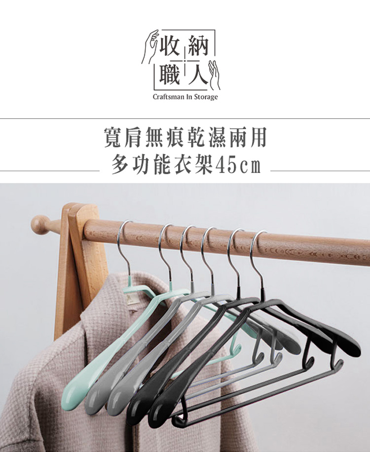 收納職人 寬肩無痕乾濕兩用多功能衣架45cm_10入_九色任選 - 藍色