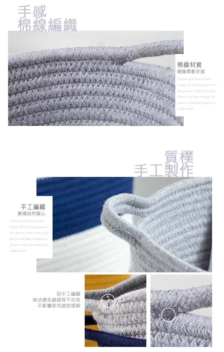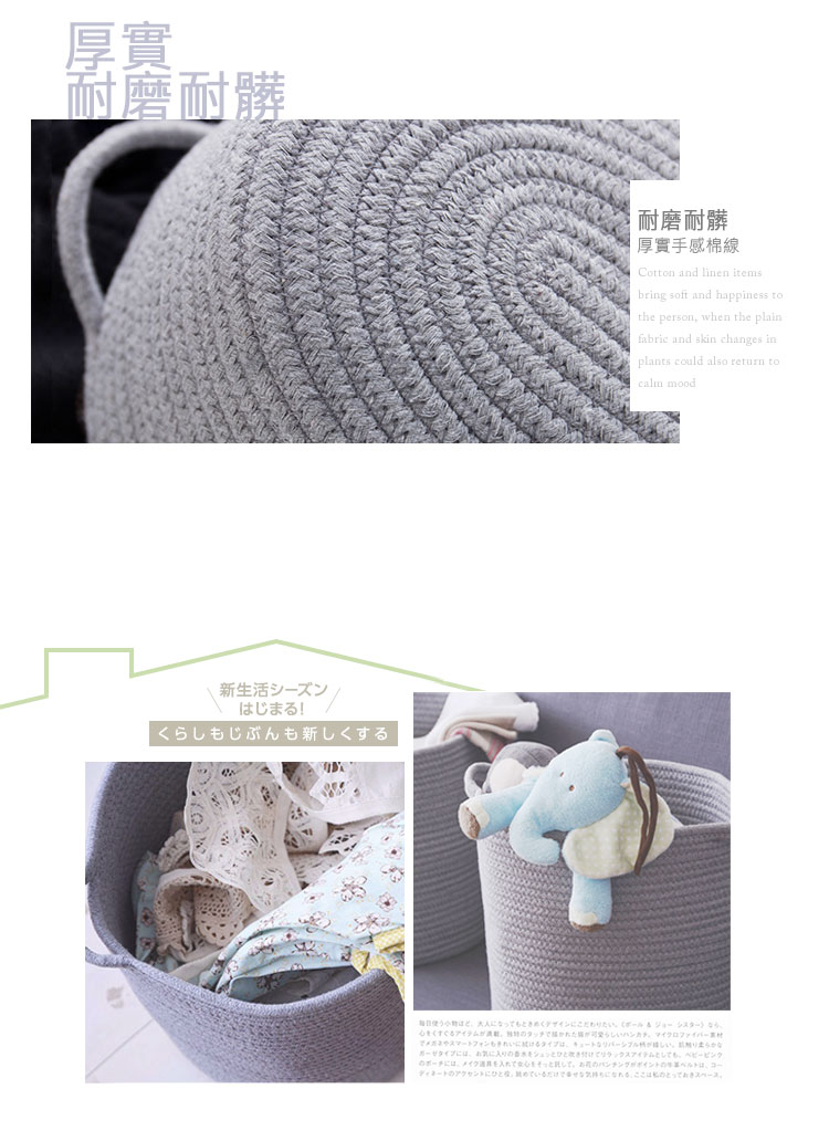 規格■材質:棉線■尺寸:約底36cm*口徑40cm*高33cm備註■手工測量,存在少許誤差屬正常。■棉麻產品在製作中偶有跳線、不規則等小瑕疵為正常現象,不影響使用請理解。■扁平摺疊出貨難免壓痕,使用後會自然恢復。