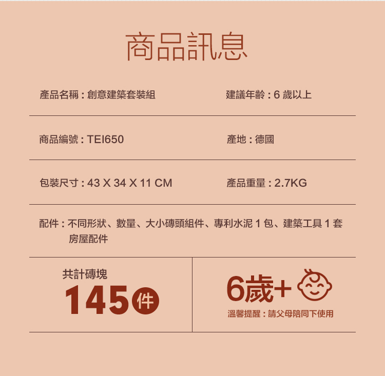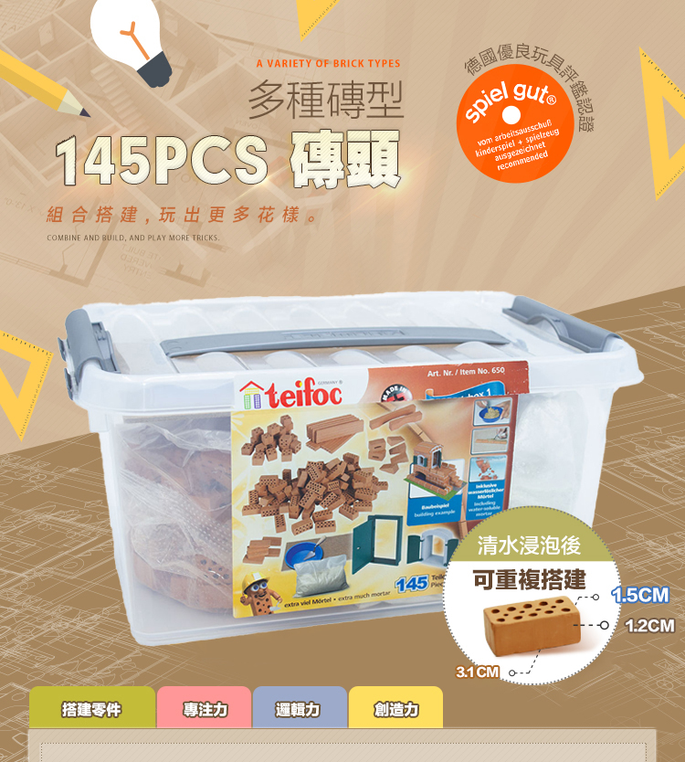 德國 teifoc DIY益智磚塊建築玩具 創意建築套裝組-TEI650