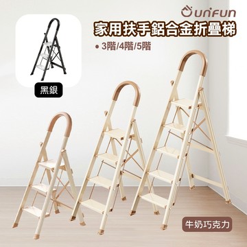 【UNIFUN樂汎】家用扶手鋁合金折疊梯(四階)工具梯 摺疊梯 多功能梯 人字梯 梯子 摺疊梯 工作梯