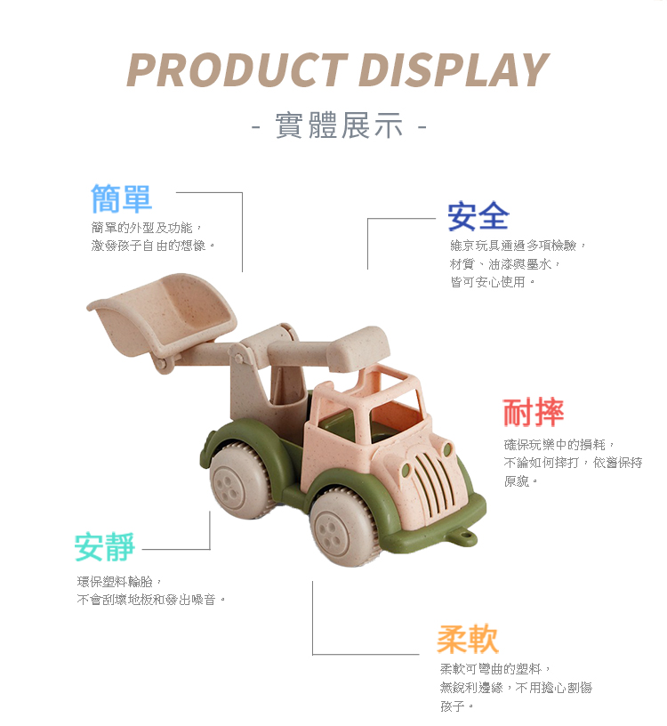 LUV質感生活 台灣 環保小麥稈玩具系列-⼤⼒⼠推⼟機