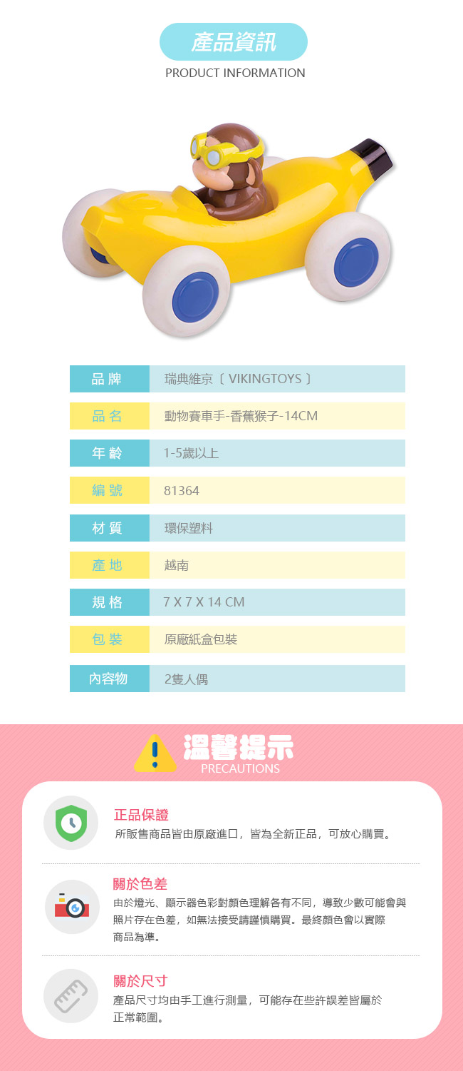 瑞典 Viking toys 動物賽車手-香蕉猴子-14cm 81363