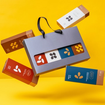 使用四種經典原料~奢華松子(松子酥x松子桂花糕)、飽滿芝麻 (芝麻酥x芝麻糕)、豐潤的花生(花生酥研磨x花生酥_顆粒)、在地台灣米(胡椒爆爆x堅果爆爆)製作而成的點心,可品嘗到相同原料、不同呈現風貌的點心,全系列使用優質堅果穀物食材,職人手藝,以古法熬煮麥芽製作,風味純正、甜而不膩,堅持天然不添加,完整呈現食材真味。中式點心全新風貌,值得細細品嘗的雅緻風味。