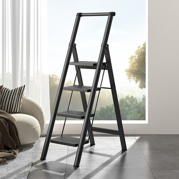 (特價) YOUFONE 扶手四步梯加厚碳鋼折疊梯/多功能人字梯 2色 - 黑色