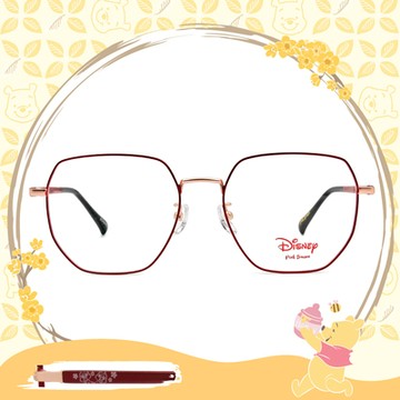 Disney-粉萌季 l 奇奇蒂蒂心花開 多邊框眼鏡 質感紅