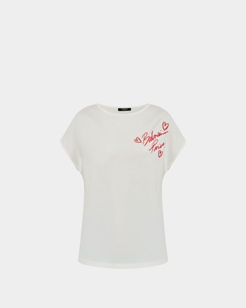 Balmain T 恤以簡約船領設計搭配短袖剪裁,胸前飾以唇膏筆觸感「Balmain Paris」手寫字樣與愛心圖案,呈現甜美不失時尚感的法式態度。版型為合身剪裁,單穿或內搭皆宜,適合日常造型點綴。