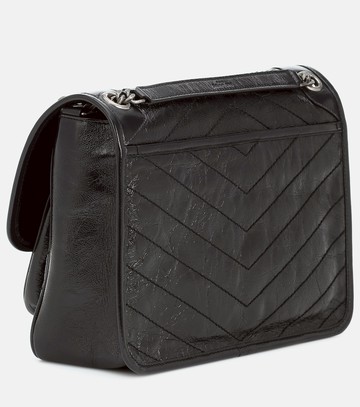 Material: calf leather. Lining: leather. Made in Italy. Designer color name: Nero. Item color: black. Internal details: internal zipped and slot pockets. Closure: magnetic fastening. Color of fastening: antique silver. Chain and leather shoulder strap. Back pocket. Hardware color: antique silver. Leather.