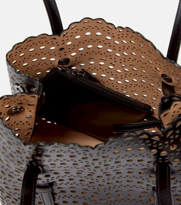 Material: calf leather. Lining: unlined. Made in Italy. Designer color name: Noir. Protective feet. Color of fastening: anthracite. Detachable, adjustable shoulder strap, Top handles. Internal details: internal zipped pouch. Closure: open top. Leather. Includes: dust bag.