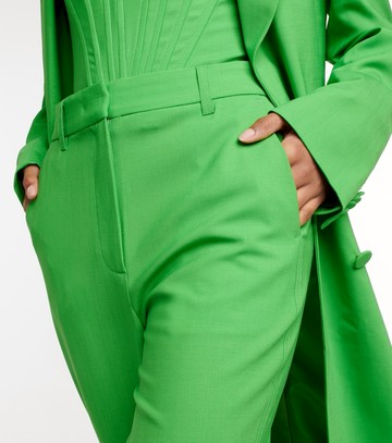 Made in Italy. Material: 97% wool, 3% elastane. Closure: zipper fly, button and hook fastenings. Designer color name: Shocking Green. Belt loops. Pockets: side slit pockets, back pockets. Lining: 100% viscose, partially lined. Care instructions: dry clean. Wool.