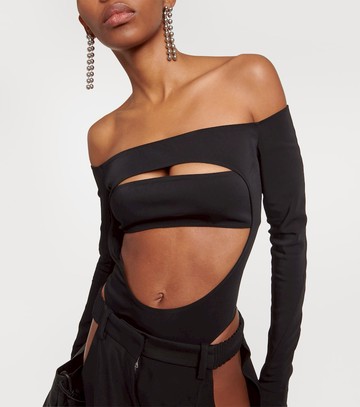 Mugler Circle off-shoulder cutout bodysuit