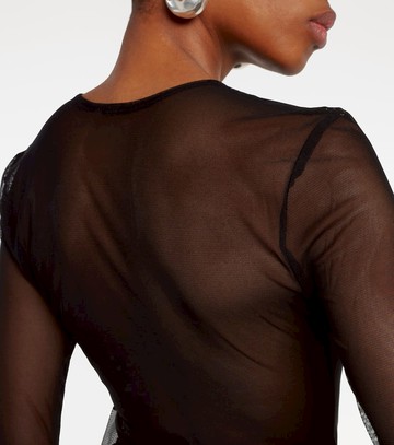 Material: 95% polyester, 5% elastane. Care instructions: machine wash cold. Made in China. Designer color name: Black/Black Mesh. Trim: 82% nylon, 18% elastane.