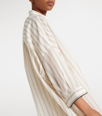 Material: 74% cotton, 26% silk. Care instructions: hand wash. Made in Italy. Designer color name: Panama/Beige/Bianco. Contains non-textile parts of animal origin. Closure: buttoned placket. Pockets: breast pocket. Cotton.