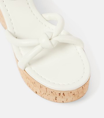 Upper: leather. Lining: leather. Sole: leather insole, rubber sole. Toe shape: round open toe. Made in Italy. Includes: dust bag, shoe box. Designer color name: White. Trim: cork. Closure: ankle strap.