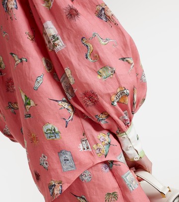 Alémais Puff-sleeve printed linen shirt