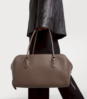 Material: leather. Lining: leather. Made in Italy. Designer color name: Elephant Pld. Top handles. Closure: zipped top. Includes: dust bag. Leather.
