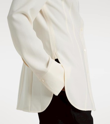 Material: 60% acetate, 40% polyester. Care instructions: dry clean. Made in China. Designer color name: Ecru. Closure: button-down.