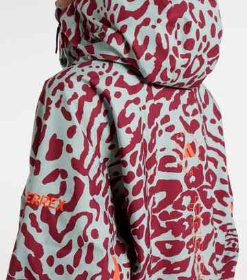 Material: 100% polyester. Care instructions: machine wash at 30 degrees. Made in Indonesia. Designer color name: Vapour Green/ Shadow Red. Closure: two-way zipped front. Pockets: zipped pockets. Adjustable shoulder straps. Drawstring hood. Lining: 100% polyurethane.