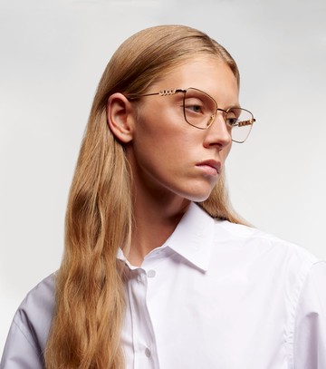 Frame material: metal. Frame color: gold. Lens filter category 0. Lens color: transparent. Made in Japan. Includes: signature intrecciato leather case, cleaning cloth. Designer color name: Gold-Gold-Transparent.