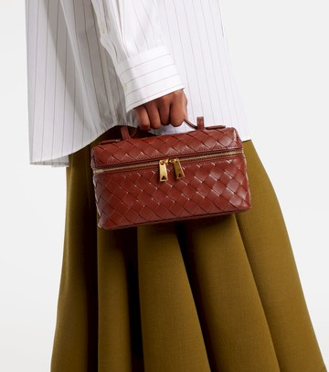 Material: calf leather. Lining: leather. Made in Italy. Designer color name: Sapele-Gold. Item color: brown. Top handle, Adjustable shoulder strap. Internal details: internal slot pocket. Closure: two-way zipped top. Hardware color: gold. Leather.