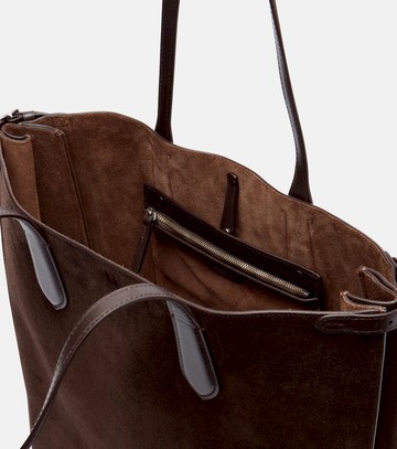 Material: cow leather (suede). Lining: cow leather. Made in China. Designer color name: Chocolate/Tobacco. Item color: brown. Closure: open top. Top handles. Internal details: internal zipped pocket. Leather.