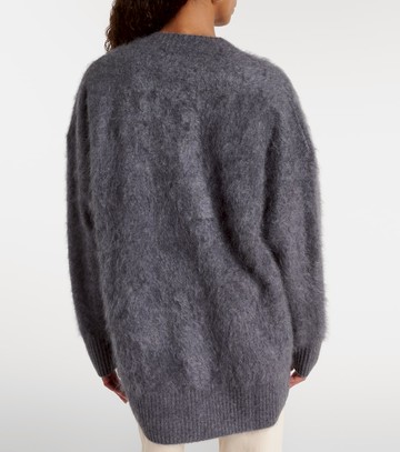 Material: 100% cashmere. Care instructions: dry clean. Made in Inner Mongolia. Designer color name: Graphite Brushed. Item color: gray. Closure: buttoned front. Cuff: ribbed. Hem: ribbed. Cashmere.