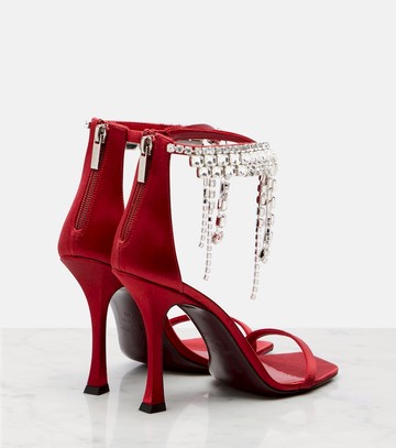 Upper: fabric. Lining: fabric, leather. Sole: leather insole and sole. Toe shape: square open toe. Made in Italy. Includes: dust bag, shoe box. Designer color name: Ruby Red. Item color: red. Closure: zipped back, elasticated sides.