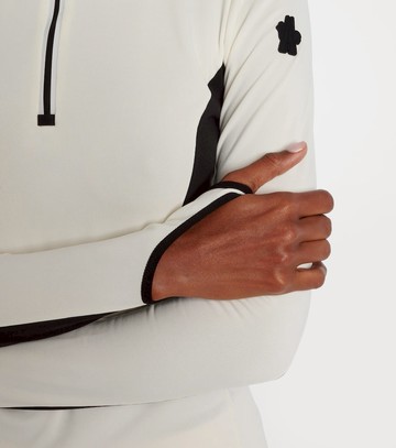 Material: 88% polyester, 12% elastane. Care instructions: hand wash. Made in Portugal. Designer color name: White. Item color: white. Material II: 88% polyester, 12% elastane. Closure: partially zipped front. Collar: turtleneck.