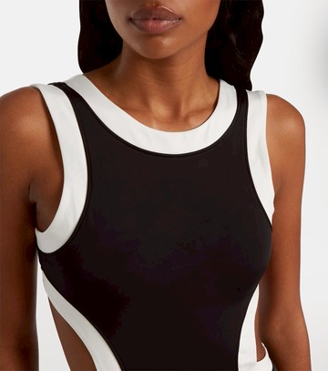 Material: 82% nylon, 18% elastane. Care instructions: hand wash. Made in Vietnam. Designer color name: Black/White. Item color: black, white. Trim: 67% polyester (recycled), 33% elastane. Lining: 80% nylon, 20% elastane. Closure: clip fastening.