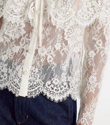 Material: 63% polyamide, 37% viscose. Care instructions: dry clean. Made in China. Designer color name: White. Item color: white. Material II: 100% polyester. Lining: 100% polyamide. Hardware color: white, silver. Self-tie collar. Closure: buttoned front. Fully lined.