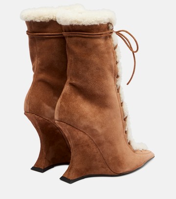 Upper: leather (suede). Lining: shearling. Sole: leather insole, leather and rubber sole. Toe shape: pointed toe. Made in Italy. Includes: shoe box. Designer color name: Cognac-Natural. Item color: brown. Closure: lace-up, zipped side.