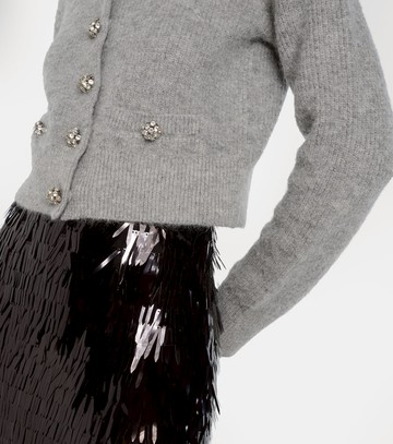 Material: 45% polyester, 32% polyamide, 15% alpaca wool, 5% wool, 2% metallic fibres, 1% elastane. Care instructions: dry clean. Made in China. Designer color name: Grey. Item color: gray. Closure: snap-buttoned front. Cuff: ribbed. Hem: ribbed.