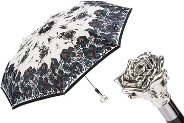 Pasotti葩莎帝 玫瑰花丛伞面 银色玫瑰手柄 晴雨伞