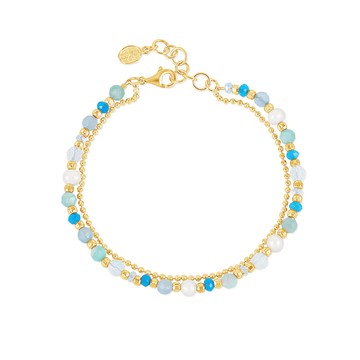 #SterlingSilver This arm-candy is definitely a want and a need this season! Handmade in our London studio, this Orissa bracelet is adorned with a mix of faceted opalite, blue topaz, apatite and white freshwater pearls. The colourful gems are complemented with sparkling sterling silver beads and chain. The bracelet is adjustable between 7-8 inches and complete with our signature lobster catch. #YellowGoldVermeil This arm-candy is definitely a want and a need this season! Handmade in our London studio, this Orissa bracelet is adorned with a mix of faceted opalite, blue topaz, apatite and white freshwater pearls. The colourful gems are complemented with sparkling sterling silver beads and chain in a luxurious 18ct yellow gold vermeil finish. The bracelet is adjustable between 7-8 inches and complete with our signature lobster catch.